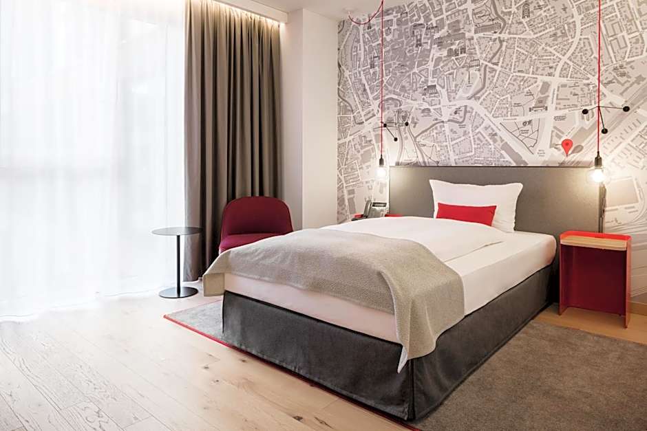 This soundproofed room with modern color concept features coffee and tea facilities, a desk, a telephone with voicemail, a flat-screen TV, a radio, free WiFi, a safe, fridge and a modern bathroom.